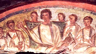 Jesus als Philosoph und Lehrer Römische Katakombenmalerei Teil der Apsis: Christus; Ravenna San Vitale; Mosaik zurück Start | Übersicht - Sitemap